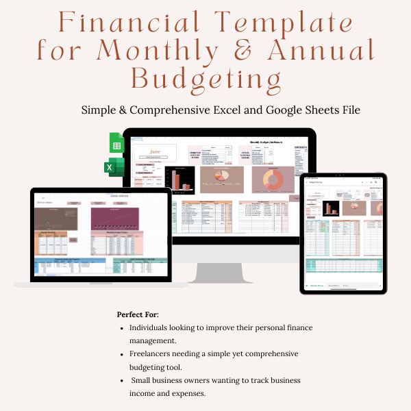 Simple Comprehensive Financial Template for Monthly and Annual Budgeting (Google Sheets & Excel)
